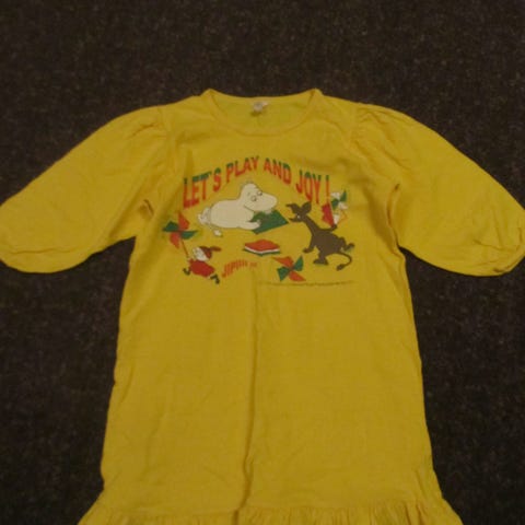 Myydään siisti ja hyväkuntoinen Vendin Muumi aiheinen yöpaita koko 120cm. Materiaali puuvillaa 100%. Nouto Espoo Juvanmalmi tai postitus ok.