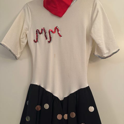Luistelupuku, jossa pitkät hihat ja yhdistelmä mustaa sekä punaista väriä. Soveltuu esim taitoluisteluun. Koko 36.