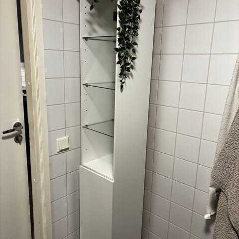 Valkoinen allaskaappi pesualtaalla ja hanalla