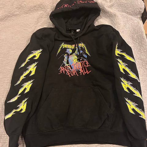Metallican oma huppari. Ostettu 2024 kesällä. Käytössä ollut vain kerran, sillä väärä koko itselle. Koko on M mutta mahtuu varmasti myös L kokoiselle. Uutena maksanut 80€. Kerran käytön jälkeen käytetty pesussa. Muuten ollut kaapissa hyvässä tallessa.