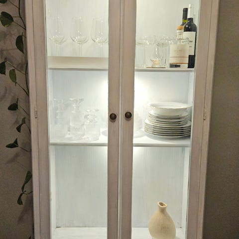 Puinen vitriini lasihyllyillä, painava aitoa puuta Laadukas ja ollut kallis. 90€ tai tarjoa.