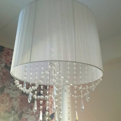 Myydään seuraavalle sisustuksen muuttuessa kaunis kattovalaisin. Pidettiin ruokapöydän päällä tätä. Kaksi maitolasista valokupua ja kolme lasista tuikkukippoa puussa. E14 kantasia lamppuja kaksi kpl mukaan. Tuikkukipot on irrotettavissa. Yhdessä tuikussa näköjään pieni särö tullut. Puun toisessa päässä pientä tummumaa, katso kuva.