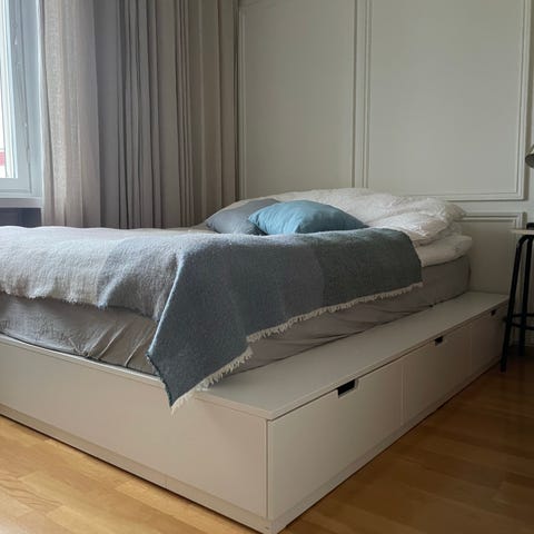 Pintapuolin puhdistettu ja nyt muuton tieltä lähtisi pois. Sängyn korkean päädyn saa helposti irti, joten voi kantaa käytännössä kokonaisena ulos, mutta toki saa myös purkaa.
