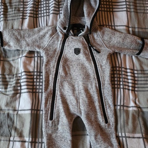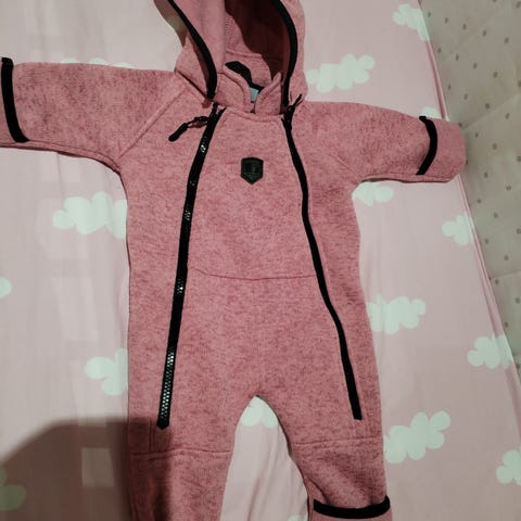 Vauvalle fleecehaalari, kaksi vetoketjua ja irrotettava huppu. Hihansuut käännettävät.