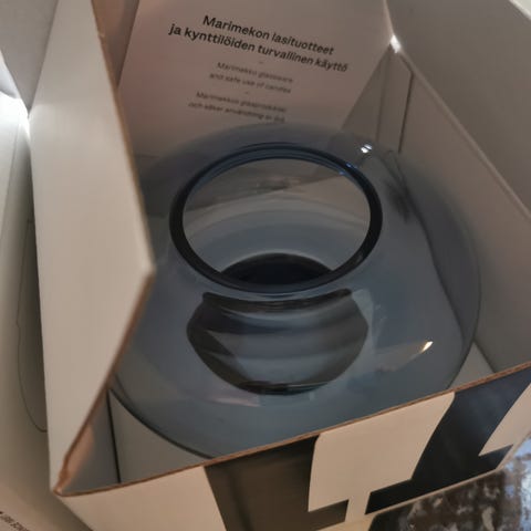 Marimekko Fyr kynttilänjalka, mustikka. Koristeena ollut, pohjassa näkyy tarrasta jälki. Siisti, ehjä, uudenveroinen. Omassa laatikossaan. Postitan hyvin pakattuna vielä erillisessä laatikossa.