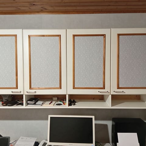 Kaapissa 3 hyllyä yläosassa ja 3 leveää laatikkoa alaosassa.
