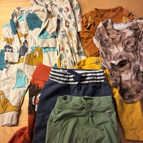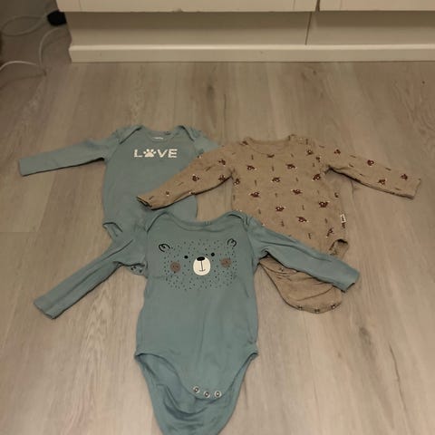 Lindex lastenvaatteet, yksi kietaisubody 56 cm, kaksi kietaisubodya 62 cm, kahdet housut 62 cm sekä haalari 62 cm