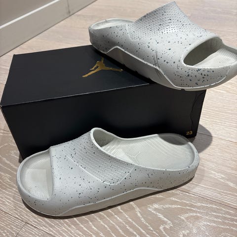 Uudet ja käyttämättömät(laput kiinni) Jordan sandaalit/läpsykkäät. Koko merkinnän mukaan 38,5 mutta ovat niukkaa mitoitusta ja vastaavat noin kokoa 37