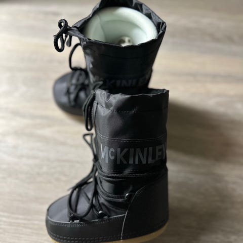 Vain sisätiloissa pidetyt (kun harmiksi liian pienet....) uudet McKinley. moonbootsit Hintalappuarukin vielä kiinni mutta olleet ndillä sisällä kotona jalassa.