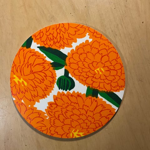 Marimekko Primavera pannunalunen / tarjoilualusta oranssein kukin.