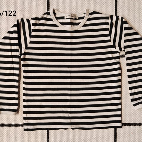 Myydään Marimekko muva raitapaita, koko 116-122, reilua mitoitusta. Pehmeä, valkoinen väri edelleen valkoinen, kauluksessa ei tummentumaa. Ainoastaan mini tussinjälki hihansuun resorissa.