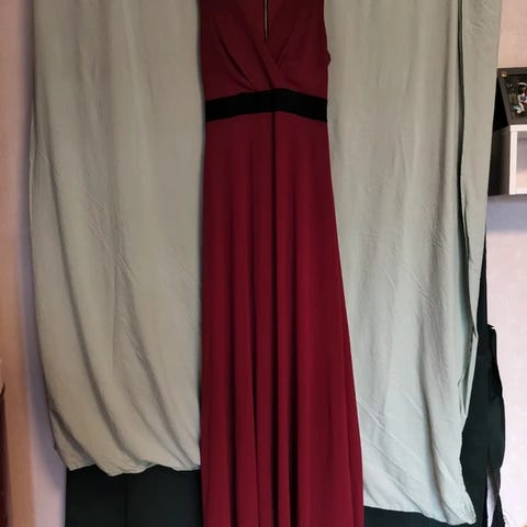 Kaunis punainen iltapuku/juhlamekko koko pienehkö L, kerran pidetty. Erittäin siistissä kunnossa. Laskeutuu nätisti eikä rypisty helposti.