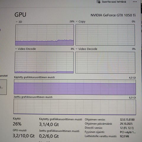 Myyntii toimiva näytönohjain jonka tehot riittää vieläkin. Näyttiksestä on yksi displayportti viallinen (näkyy kuvassa), ei vaikuta käyttöön ellei tarvitse kolmea näyttöä kytkeä display kaapeleilla samaan aikaan.