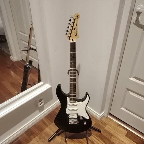 Yamaha sähköbasso punaisella värillä. Mukana Williams G5-15ICA vahvistin, jossa on säätimet volume, treble, middle, bass ja kuulokeulostulo. Setti sisältää myös kitaran hihnan ja kaapelit. Kantolaukku myös mukaan.