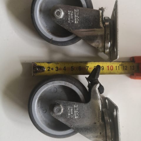 Blicklen saksalaisia laatupyöriä, polyamidia. Mallimerkintä B-PO 150R. Halkaisija 150 mm, leveys 50 mm, kantavuus 300 kg, neulalaakeroituja. Rakennekorkeus 190 mm. Levykoko 140 x 110 mm, reikäväli 105 x 75-80 mm. Kiinnitysreikä 11 mm. Olleet kerran käytössä, ominaisuuksiltaan uusien veroisia. Hinta vain puolet uusien hinnasta. Myydään kerralla molemmat. Hinta/kpl. Postikulu 10,90. Katso myös muut ilmoitukseni!