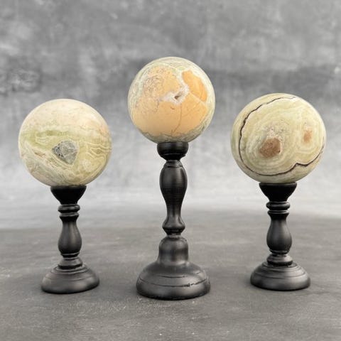 Upea onyx-pallo räätälöidyllä jalustalla ja vapaamuotoisena.