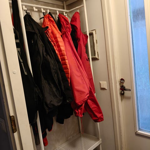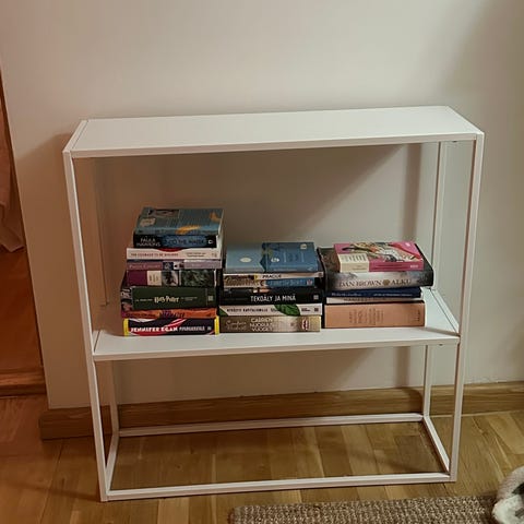 Hyvässä kunnossa oleva eteisen hyllykkö.