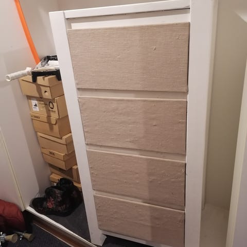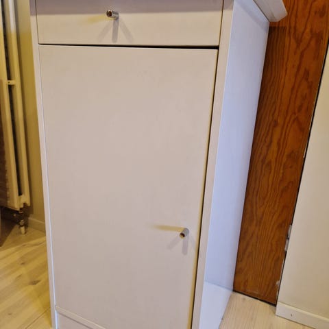 Myydään valkoinen lipasto. Ylimmällä rivistöllä pienemmät laatikostot. Keskellä ja alhaalla isommat. Painava.