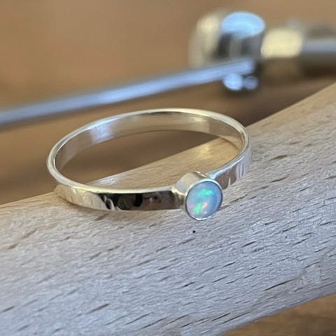 Tämä sormus on peräisin rajoitetusta erästä "Lotus", suunniteltu ja toteutettu Alexandra Steinforthin (Ale jewels) toimesta, korujen ja taiteen lisenssinhaltija. Se on täysin käsityö- ja käsinveistetty, ja se yhdistää lehden muodon kauniiseen luonnonopaloon, jonka muoto on ovaali ja kooltaan 7×5 mm. Nykyaikainen muotoilu, ihanteellinen mihin tahansa tilaisuuteen ja jalokivien sekä taidekorujen ystäville. Kukan etummainen halkaisija on enintään 2,5 cm. Peruskoko on 17, säädettävä.