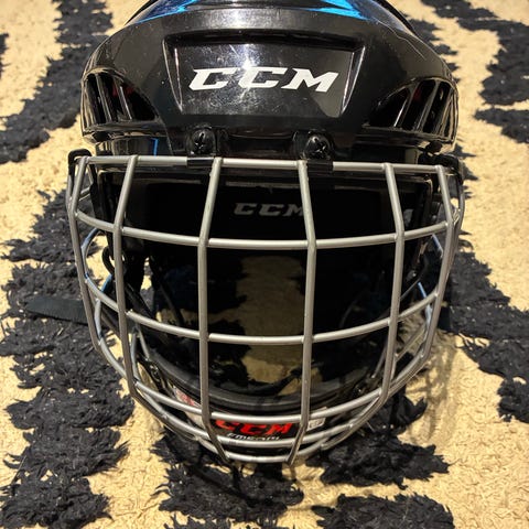 CCM jääkiekkokypärä metallisella kasvovisiirillä. Koko S eli 52-57 cm.
