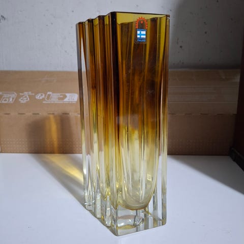 Valmistettu ruskeasta ja kirkkaasta lasista.
