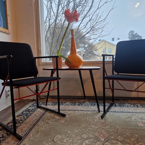 Myydään hyvässä käytetyssä kunnossa oleva Suomalaista 80-luvun designia edustava Yrjö Kukkapuron suunnittelema punamusta funkkistuoli. Tarralla merkitty. Käsinojissa joitain käytönjälkiä, yleisilme erittäin siisti.
