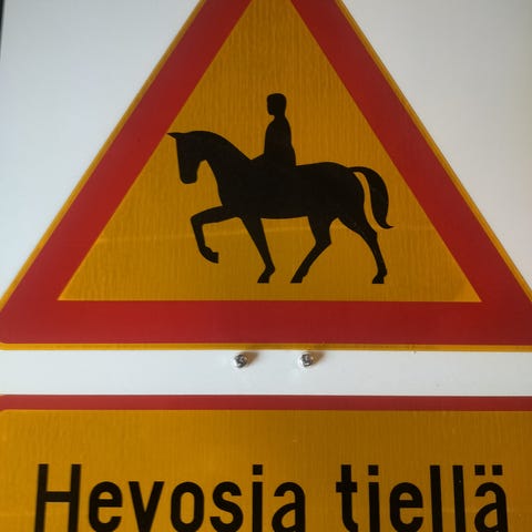 Varoitus kilpi hevosista.Uusi.Koko leveys 40cm korkeus 50cm.Nouto Mäntsälästä tai lisäksi pk 6.90