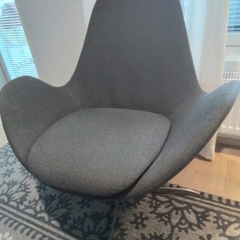 Tyylikäs Martelan rullajalustalla oleva nojatuoli esim aulatilaan tai vierastuoliksi. Alcantara verhoilu.