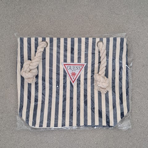 Aito Guess rantalaukku rantakassi kangaskassi naisille sinivalkoraidallinen