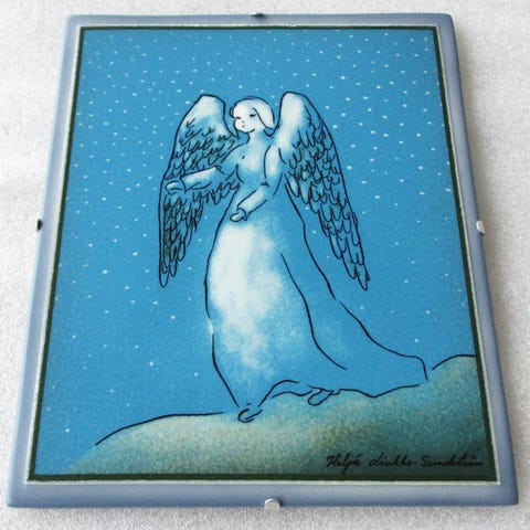 Heljän loistokuntoinen keraaminen seinälaatta vuodelta 1982.