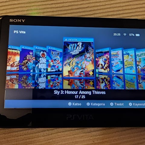 Muovinen myymälästandi PS Vita käsikonsolille, koko (LxSxK): 30 x 25,5 x 13,5 cm . Tässä on joskus ollut myymälässä esillä PS Vita -konsoli ja aivan mahtava lisä omaan peliluolaan.