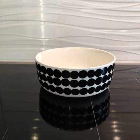 Myydään vähän käytetty ja erittäin hyväkuntoinen Marimekko Räsymatto kulho 1,5 litraa. Halkaisija 20cm. Konepesun-, uunin-, mikroaaltouunin- ja pakastuksenkestävä.
