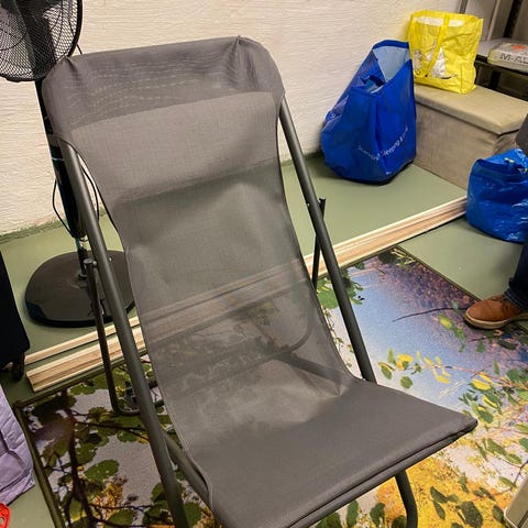 Runko ja jalusta ovat hyvässä kunnossa, istuintyynyssä normaalia käytön jälkeä (päällinen irrotettavissa ja pestävissä, pesty viimeksi joulukuussa ja on valmiiksi puhdas). Kuljetusta varten istuinosa irrotetaan.