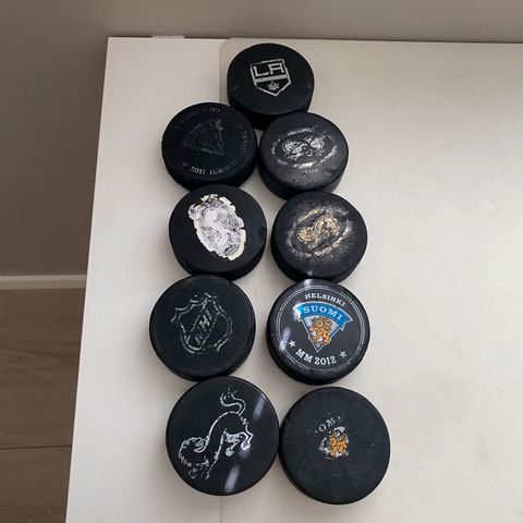 Jääkiekkoja 10kpl vähän hienompia kiekkoja mm. ccm, reebok, aconwave, kärppä, hockeybase.