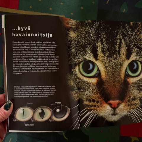 Myynnissä pehmeäkantinen kansipaperein Bruce Fogle: Kissanomistajan käsikirja. Savuton ja eläintalous (=löytyy mahdollisesti eläimen karvoja). MMM.