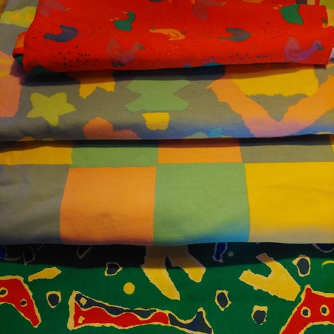 Kangaspalat ostettu Morogorosta tekstiilitukkukauppiaalta vuonna 1997. Ovat olleet hyvin säilytettynä varastossa, koska en ole keksinyt niille käyttöä.