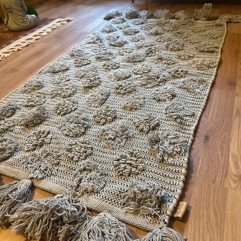 Annon Rae-puuvillamatot on käsinkudottu Intiassa. Maton pinnassa on sekoitettuna mustaa loimea ja valkaisematonta kudontaa. Maton päistä löytyy tupsut.