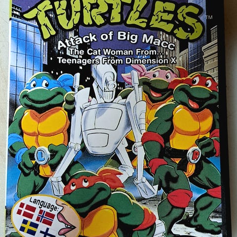 Turtles dvd boksi, kaikki vanhat jaksot vuosilta 1987-1991. 7 DVD levyä, kaikki toimii. Laatikko vähän kärsinyt säilytyksessä.