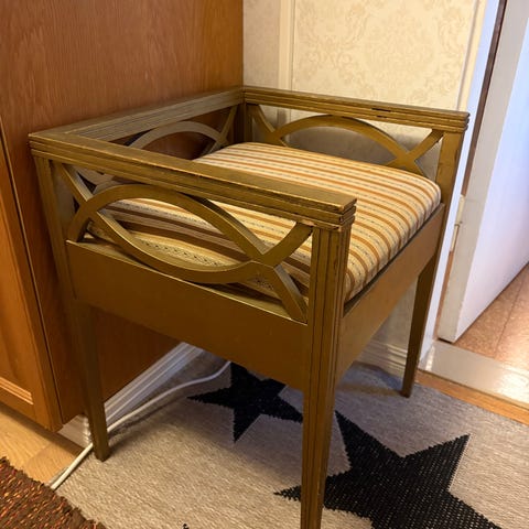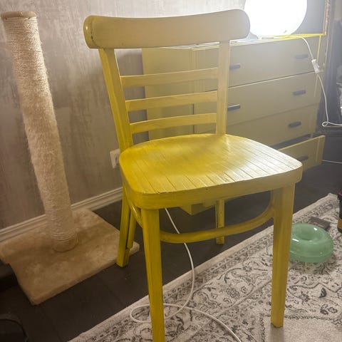 Söpö ja siistikuntoinen keltainen tuoli.