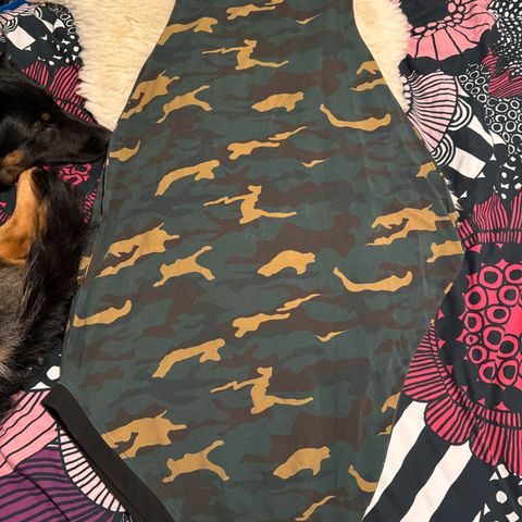 Hyväkuntoinen MariMarin Beehive Camouflage pitkä mekko. Hihat puolipituiset. Materiaali 95% luomupuuvillaa, 5% elastaania. Joustaa ja on ihana päällä.