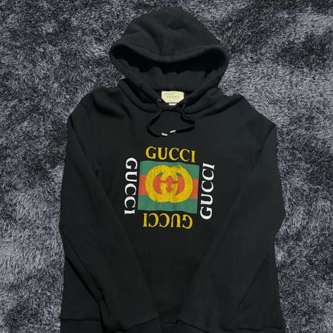 Guccin miesten puolelta ostettu huppari koko xs mutta itse kokoa m ja on sopiva.