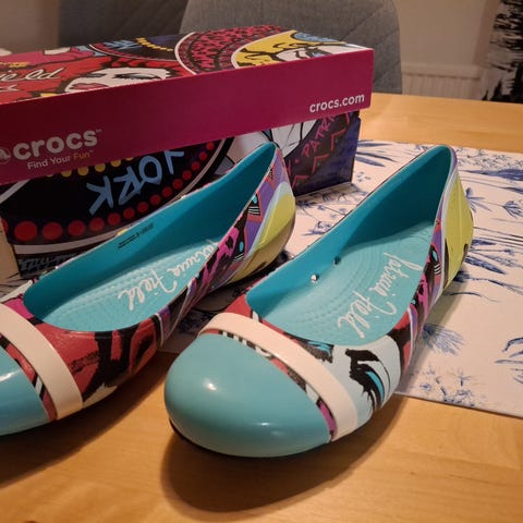 Myydään siistit punaiset Crocs ballerinat.