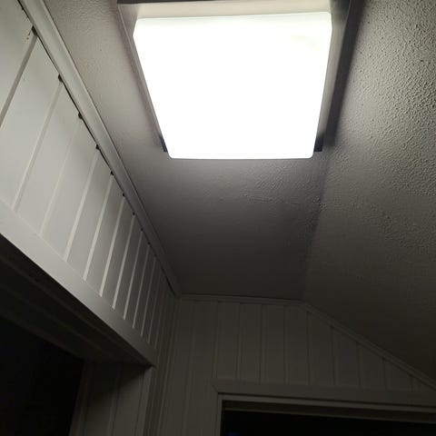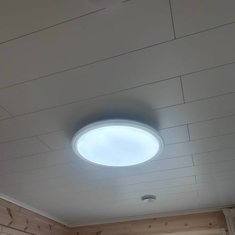 Myydään turhaksi jäänyt kuvien mukainen RGBW-kattolamppu.