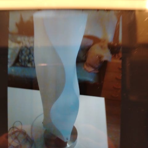 Hyväkuntoinen Innolux Aurora kirkasvalolamppu. Korkeus 68 cm. Aaltomaisesti muotoiltu, himmennettävä.