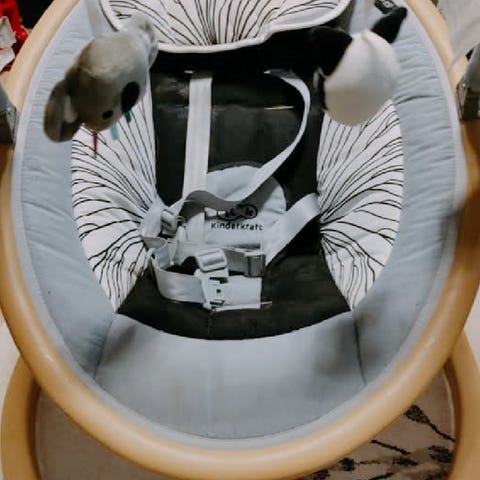 Keinuva sitteri/koliikkikeinu, kaukosäädin mukaan. Ajastintoiminto, soittaa musiikkia tms. Meillä ollut käytössä vähän, tyynyosa juuri pesty hajusteettomalla pesuaineella. Saa tarjota.