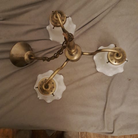 Kaunis Vintage kattovalaisin. Kuusi kuvioitua lasilevy ja kullanvärisissä metallikehiköissa. Max. 60 W.