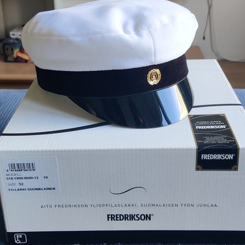 Uudenveroinen yo-lakki, ollut vain itselläni päässä omassa yo-juhlassa. Koko 56