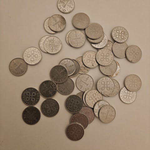 30 kpl kuparipenniä, tästä siistit kolikot halvalla, hinta koko kasalle VAIN 2 euroa.