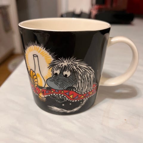 Arabia Muumi muki, jossa on Muumi-aiheinen kuvitus. Siisti ja ehjä