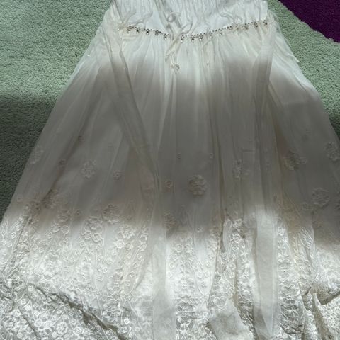 Mekko on käytetty, mutta erittäin hyväkuntoinen. Mukava päällä ja helppo liikkua. Selkäpuolen pääntie on hieman edestä matalampi, mikä tekee pukemisesta helppoa ja istuvuudesta mukavan.